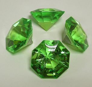 Die Acryldiamanten in grün sind ca. 32 mm groß und kegelförmig.