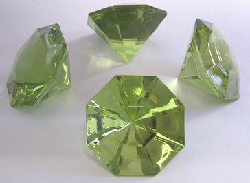 Die Acryldiamanten in maigrün sind ca. 32 mm groß und kegelförmig.