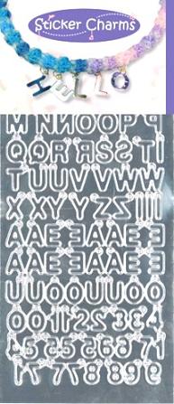 Produkt: Anhänger Sticker, Charms Spiegelfolie silber, Buchstaben und Zahlen 13 mm