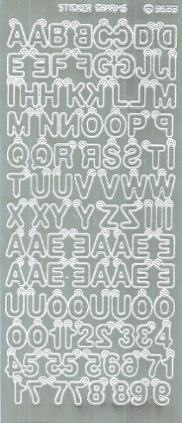 Alle Buchstaben und Zahlen sind als Vorder- und Rückseite auf diesem Konturenstickerbogen abgebildet.