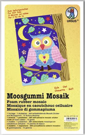 In diesem Moosgummi Mosaik Bastelset von Ursus befindet sich das komplette Material um das Bild Eule zu gestalten.