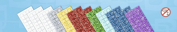 je 1x selbstklebendes Moosgummimosaik Platte in glitter dunkelblau, glitter hellblau, glitter rot, glitter gelb, glitter silber und glitter weiß insgesamt ca.400 glitter Mosaik Sticker