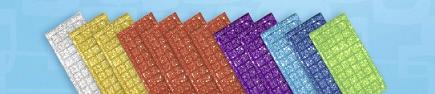 je 1x selbstklebendes Moosgummimosaik Platte in glitter hellgrün, glitter hellblau, glitter violett, glitter rot und glitter gold insgesamt ca.400 glitter Mosaik Sticker