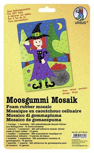 In diesem Moosgummi Mosaik Bastelset von Ursus befindet sich das komplette Material um das Bild Hexe zu gestalten.