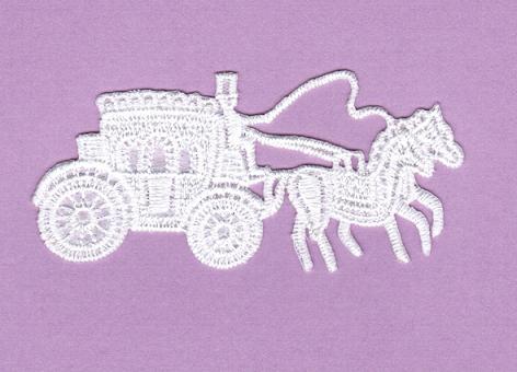 Dieser Ziersticker in weiß besteht aus einer filigranen Stickerei in Form einer Hochzeitskutsche. Diese aufbügelbare Stickerei eignet sich sehr gut für die Kartengestaltung aber auch für Lampen, Keilrahmen, Filztaschen und vieles mehr. Tipp: