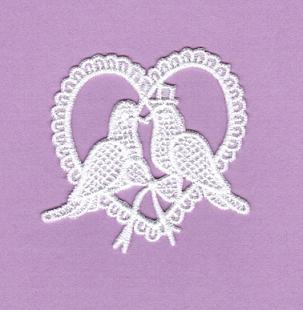 Dieses Taubenpaar im Herz ist ca. 6 cm breit und ca. 5,5 cm hoch.