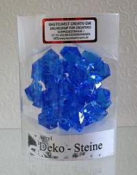 Die Deko Acrylsteine in dunkelblau sind ca. 25 mm lang, ca. 18 mm hoch und ca. 18 mm dick. Von diesen transparenten Dekosteinen aus Acryl sind ca. 29 Stück in der 80 g Dekobox.