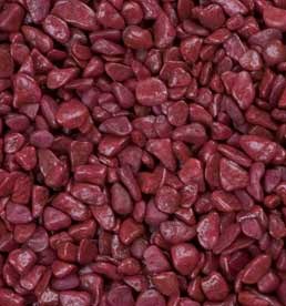Die Dekosteine (Dekogranulat-Marmorgestein) in der Farbe burgund gibt es in der Körnung 6 bis 8 mm, im Druckverschlussbeutel portioniert.