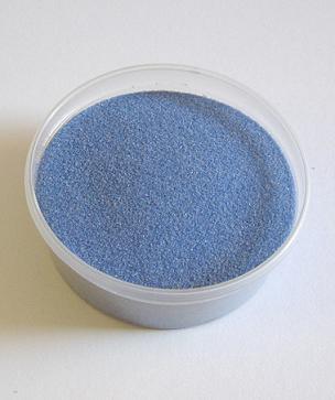 Der feine Deko-Farbsand in der Farbe himmelblau mit einer Körnung von 0,1 - 0,5 mm wird im Druckverschlußbeutel portioniert.