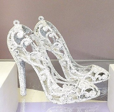 Diese schönen kleinen Dekoschuhe in silberglitter aus einem stabilen Kunststoff, haben eine Breite von 4,3 cm und eine Höhe von 9.5 cm und eine Tiefe von 10,0 cm.