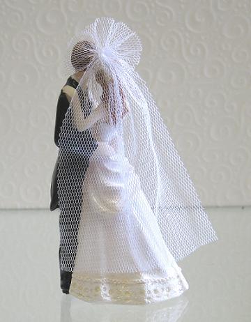 Das Hochzeitspaar mit Schleier ist ein Glanzpunkt auf jeder Hochzeitstorte oder Hochzeitsgeschenk.