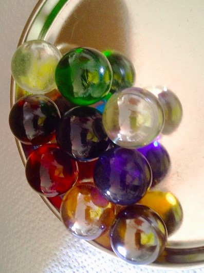 Glaskugeln in normaler Dekoglasqualität für übliche Dekozwecke, transparent und irisierend, ca. 2,5 cm Durchmesser