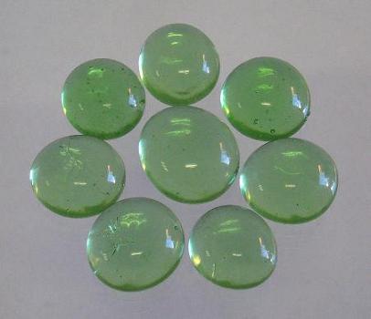 Die Glasnuggets sind auf der Unterseite flach, auf der Oberseite gewölbt und ca. 8 mm dick.