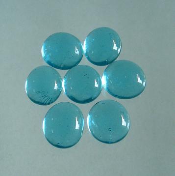 Die Glasnuggets sind auf der Unterseite flach, auf der Oberseite gewölbt und ca. 8 mm dick.