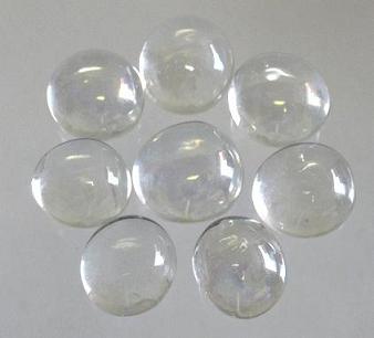 Die Glasnuggets sind auf der Unterseite flach, auf der Oberseite gewölbt und ca. 8 mm dick.