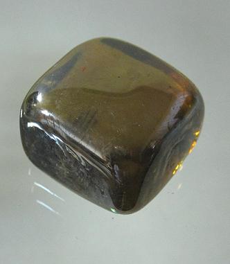 Dieser schöne Glasstein Quader in irisierend bernstein hat eine Dicke von ca. 12 mm.