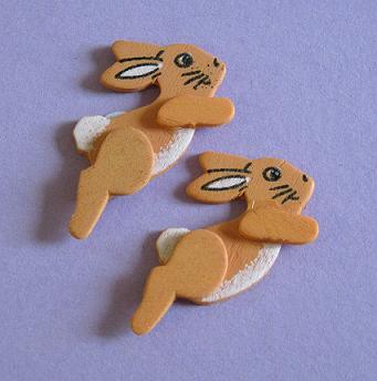 Die braunen Hasen wurden aus dünnem Sperrholz geschnitten und haben separat aufgeklebte Vorder- und Hinterfüße .