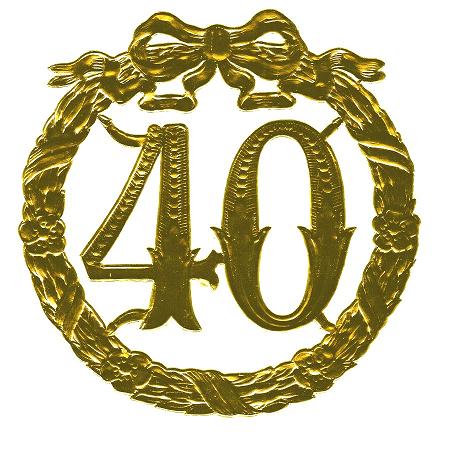 Die Jubiläumszahlen in gold 40 hat einen schönen Kranz mit Blümchen und ist mit einer Schleife verziert.