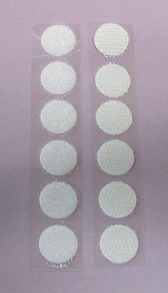 Diese runden Klettpunkte und Haken in weiss sind selbstklebenden und ca. 15 mm im Durchmesser groß.