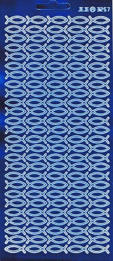 Auf diesem Reliefstickerbogen in dkl. blau befinden sich 130 einzelne Ichthy Fische die komplett zu verwenden sind.