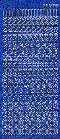 Produkt: Konturensticker Diamant blau-silber, Zahlen 0 bis 9, 12 mm