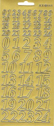 Auf diesem Konturenstickerbogen in gold befinden sich 2x Adventzahlen in verschiedenen Größen: