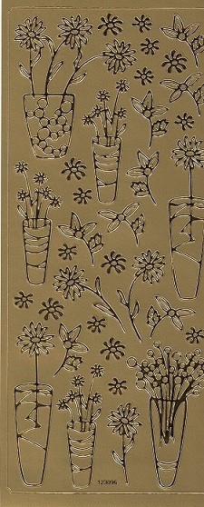 Auf diesem Reliefstickerbogen in gold befinden sich verschiedene Blumen in Vasen Diese Aufkleber eignen sich für viele Basteltechniken wie z.B. Kartengestaltung, Scrapbooking und auch Kerzenbeschriftung anstelle von Verzierwachs und auch als Schablone.