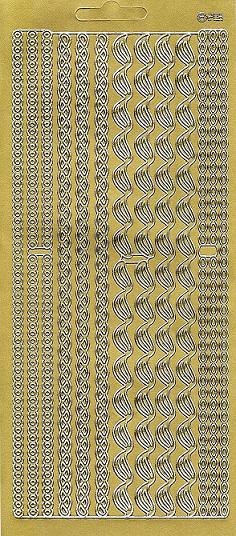 Auf diesem Reliefstickerbogen in gold befinden sich verschiedene Borten und Lilienblätterborten.