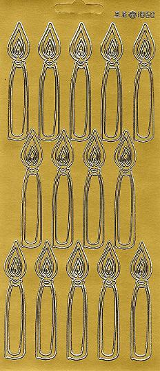 Auf diesem Reliefstickerbogen in gold befinden sich 14 große brennende Kerzen die komplett zu verwenden sind.