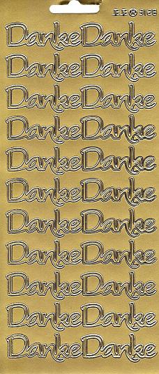 Auf diesem Reliefstickerbogen in gold befindet sich 22x der Schriftzug Danke in einer modernen Schriftart, alle Wörter können einzeln plaziert werden.