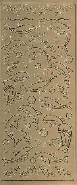 Auf diesem Reliefstickerbogen in gold befinden sich verschiedene Delfine Motive und Ornamente.