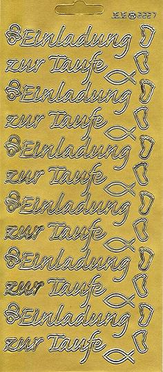 Auf diesem Reliefstickerbogen in gold befindet sich 6x der Schriftzug Einladung zur Taufe in großer Schrift, alle Wörter können einzeln plaziert werden.