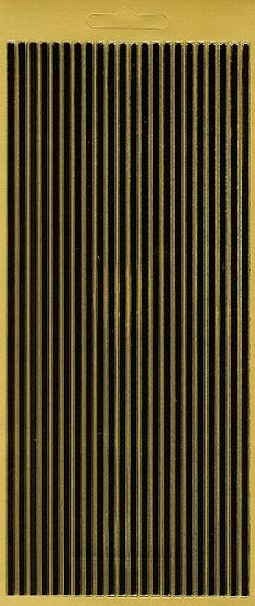 Auf diesem Konturenstickerbogen in gold sind 22x gerade Linien, 3 mm breit und ca. 21 cm lang einzeln zu verwenden. Die geraden Linien auf diesem Konturensticker sind glänzend gold und wirken sehr edel.