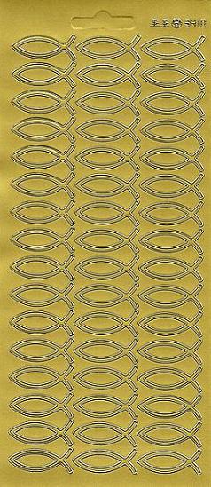 Auf diesem Reliefstickerbogen in gold befinden sich 48 einzelne Ichthy Fische die komplett zu verwenden sind.
