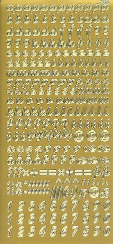Produkt: Konturensticker gold, Kleinbuchstaben und Zahlen kursiv