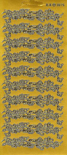 Auf diesem Reliefstickerbogen in gold befindet sich 10x eine Zum Muttertag Borte ca. 2 cm hoch und ca. 9,0 cm lang.