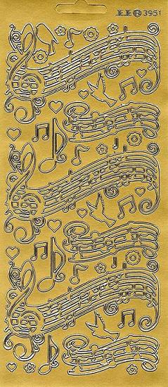Auf diesem Reliefstickerbogen in gold befinden sich verschiedene Notenbänder und Ornamente :