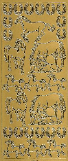Auf diesem Reliefstickerbogen in gold befinden sich verschiedene Pferde Motive und Ornamente :