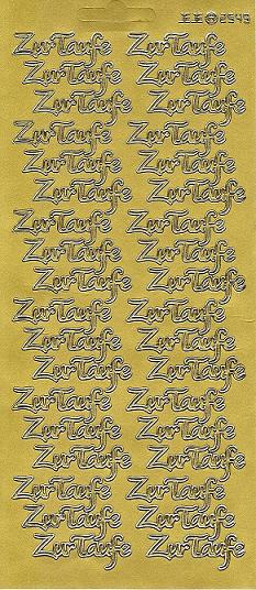 Auf diesem Reliefstickerbogen in gold befindet sich 36x der Schriftzug Zur Taufe, alle Wörter können einzeln plaziert werden.