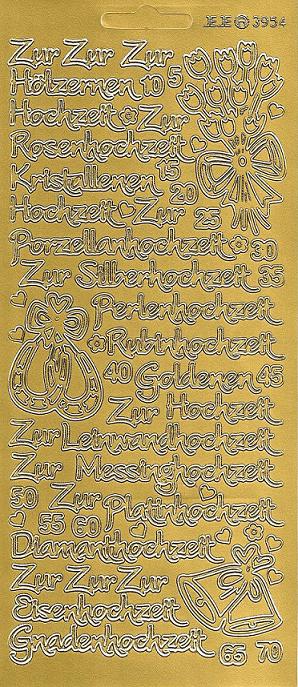Auf diesem Reliefstickerbogen in gold befinden sich Schriftzüge:für die Hochzeitsjubiläum Diese Aufkleber eignen sich für viele Basteltechniken wie z.B. Kartengestaltung, Scrapbooking und auch Kerzenbeschriftung anstelle von Verzierwachs.