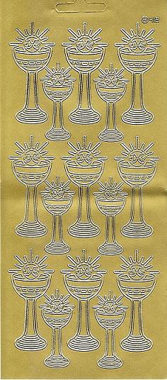 Auf diesem Reliefstickerbogen in gold befinden sich 9 große und 6 kleine Kelche mit Hostie die komplett zu verwenden sind.