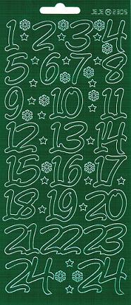 Produkt: Konturensticker grün Adventzahlen 1 bis 24