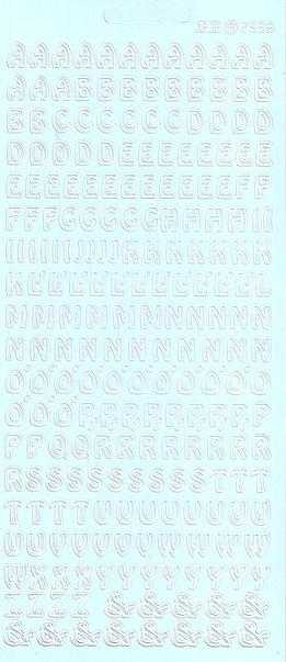 Auf diesem Reliefstickerbogen in hellblau befinden sich Großbuchstaben 8 mm hoch und 2-6 mm breit in folgender Anzahl: Diese Aufkleber eignen sich für viele Basteltechniken wie z.B. Kartengestaltung, Scrapbooking und auch Kerzenbeschriftung anstelle von Verzierwachs.