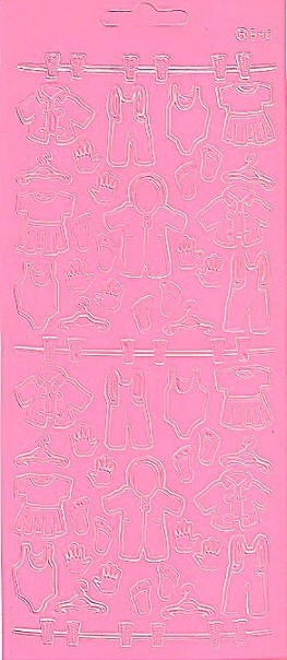 Auf diesem Reliefstickerbogen in rosa befinden sich folgende Babywäsche und Wäscheleinen: