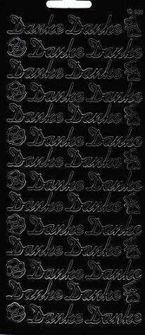 Auf diesem Reliefstickerbogen in schwarz befindet sich 28x der Schriftzug Danke 1,5 cm hoch und 4 cm breit.