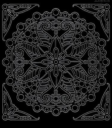 Auf diesem Reliefstickerbogen in schwarz befindet sich eine Mandala Blume Bild.