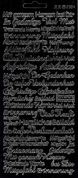 Auf diesem Reliefstickerbogen in schwarz befinden sich verschiedene Kondulenz Sprüche in unterschiedlichen Schreibweisen und Größen.