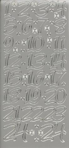 Produkt: Konturensticker silber Adventzahlen 1 bis 24