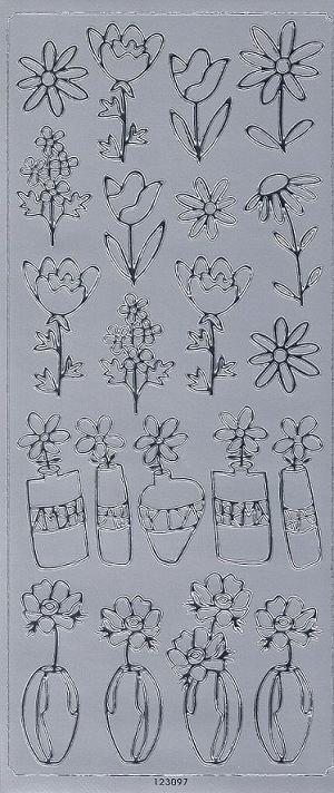 Produkt: Konturensticker silber, Blumen und Blumen in Vasen, Spiegeleffekt.