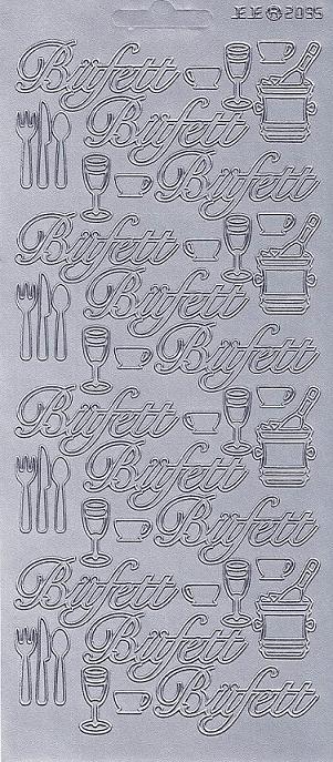 Auf diesem Reliefstickerbogen in silber befindet sich 12x der Schriftzug Büfett ca. 2,0 cm hoch und 5,0 cm breit. Diese Aufkleber eignen sich für viele Basteltechniken wie z.B. Kartengestaltung, Scrapbooking und auch Kerzenbeschriftung anstelle von Verzierwachs.